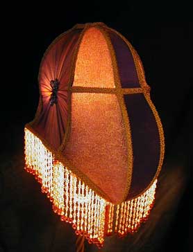 Size: 17" at widest point / 9" wide at bottom / 14.5" tall without fringe. Pictured here with a 6" fringe to give an overall height of 20.5". $320.00 for this Boston Crab lampshade. s Co "TOO MUCH IS NEVER ENOUGH" |