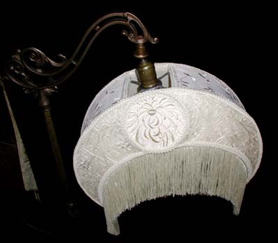 Here are some photos of different crescent lampshades. Each one has been finished in a different style. This shade is great on a bridge lamp or works well on a table lamp.