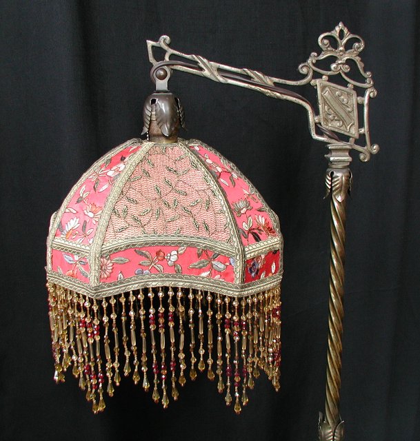 Bridge lamps and bridge lamp shades were very popular during the 1910's through the 1940's. They were used for lighting and decoration. Most of the light from a bridge lamp, falls in a downward pattern which allows the lamp to be used beside a chair for reading. Bridge lamps and fabric bridge lamp shades were also used near tables when light was needed. The homes of this time period often had ten to twelve foot high ceilings, and overhead lighting was less dominate. Bridge Lamps could be moved around the home to provide light where it was needed. |